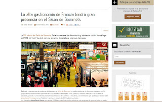"Dedicado a los amantes de productos delicatessen, el Salón de Gourmets no podía celebrarse sin las presencia de un nutrido grupo de empresas francesas que mostrarán sus aceites, champagnes, vinos, quesos y caviares. Aterrizarán en el Salón de Gourmets, gracias a La Chambre (Cámara Franco-Española de Comercio e Industria), una institución que apuesta por apoyar a los productores franceses con un Pabellón Francia, un espacio de 129 metros cuadrados", así comienza el artículo publicado en la revista digital profesional Retail Actual donde relata nuestra presencia en la pasada edición del Salón.